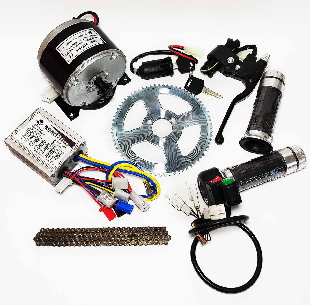 Електричний набір для електрифікації транспортних засобів із номінальною потужністю 250 ватів і працює від акумулятора 24 вольти.